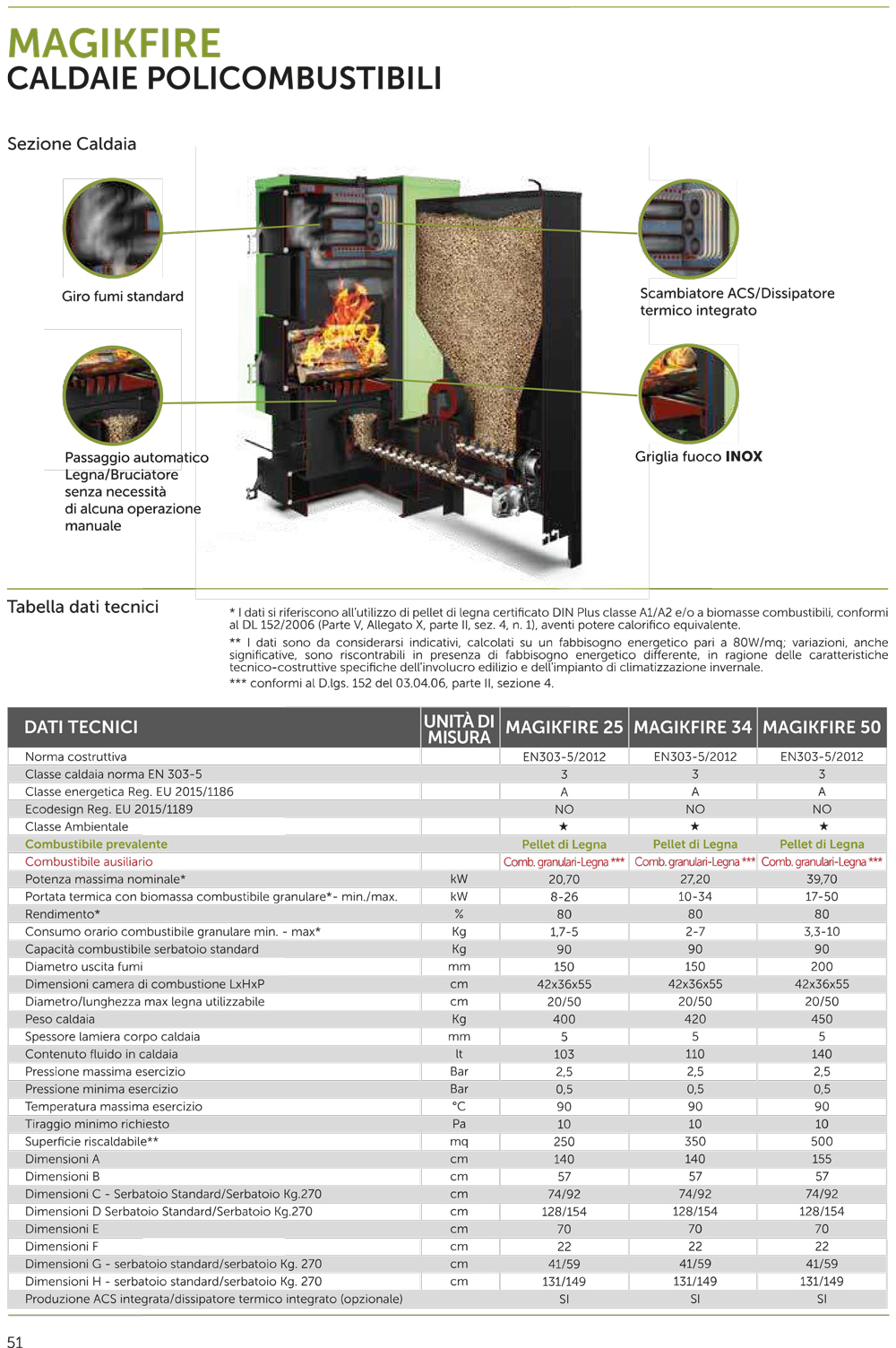 Policombustibile ad elevate prestazioni con potenze da 25, 34, e 50 kw. Brucia legna, pellet, gusci di nocciola, nocciolino di sansa, gusci di mandorla e pistacchi. Garanzia 5 anni sulla caldaia. Passaggio automatico dalla funzione legna alla funzione bruciatore. Accensione automatica e programmabile. App android e ios per il controllo da remoto (accessorio).