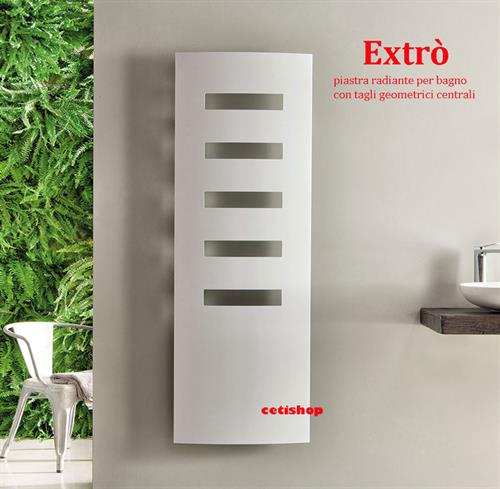 radiatore di arredo per bagno dalle forme pulite, ma particolari per leggera bombatura della superficie radiante. Le valvole possono essere a vista o nascoste grazie al particolare brevetto di apertura a porta da richiedere. questa versione è adatta agli ambienti bagno con tagli porta salviette nella parte centrale della superficie.